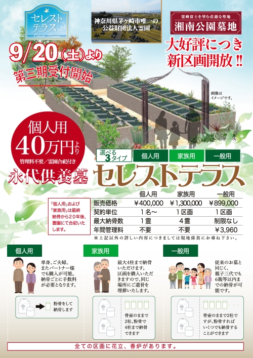 「湘南公園墓地 茅ヶ崎霊園」にて好評販売区画のご案内